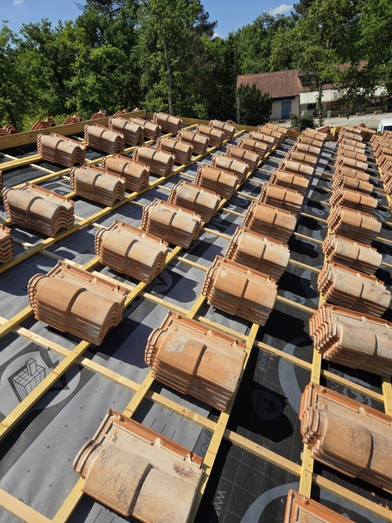 - Les tuiles en terre cuite : Très répandues dans toute la région Nouvelle-Aquitaine, elles sont idéales pour le climat girondin. Leur capacité à bien évacuer l’eau de pluie, leur résistance au vent et leur longévité en font un choix judicieux. On retrouve fréquemment la tuile canal dans les secteurs ruraux et viticoles, et des tuiles mécaniques dans les zones urbaines comme Bordeaux ou Mérignac.